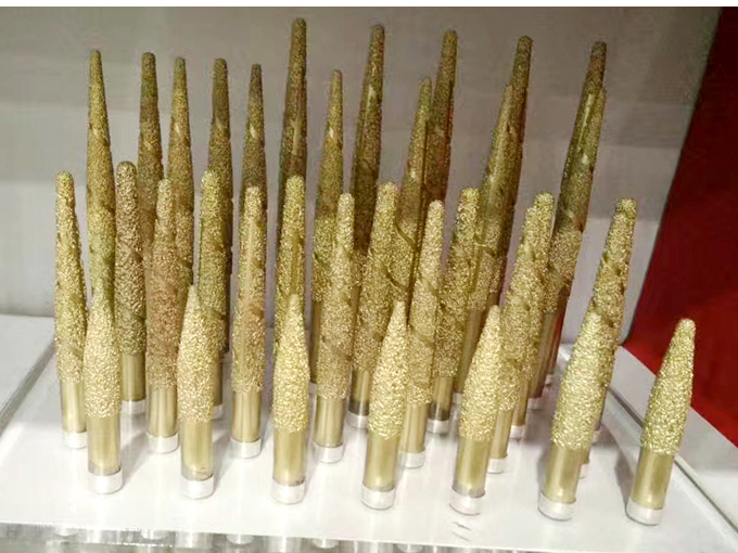 Vacuum brazed diamond sculpturing head is used for cutting and grinding marble, granite, artificial stone, ceramic tile, jade etc., also can be used for cemented carbide, cast iron, resin, magnetic material, glass and other materials. It is an excellent grinding tool with handle that for grinding small area or grinding small areas into fragments. It can be used for grinding surfaces like inner circle, fillet, groove, camber, and cone.